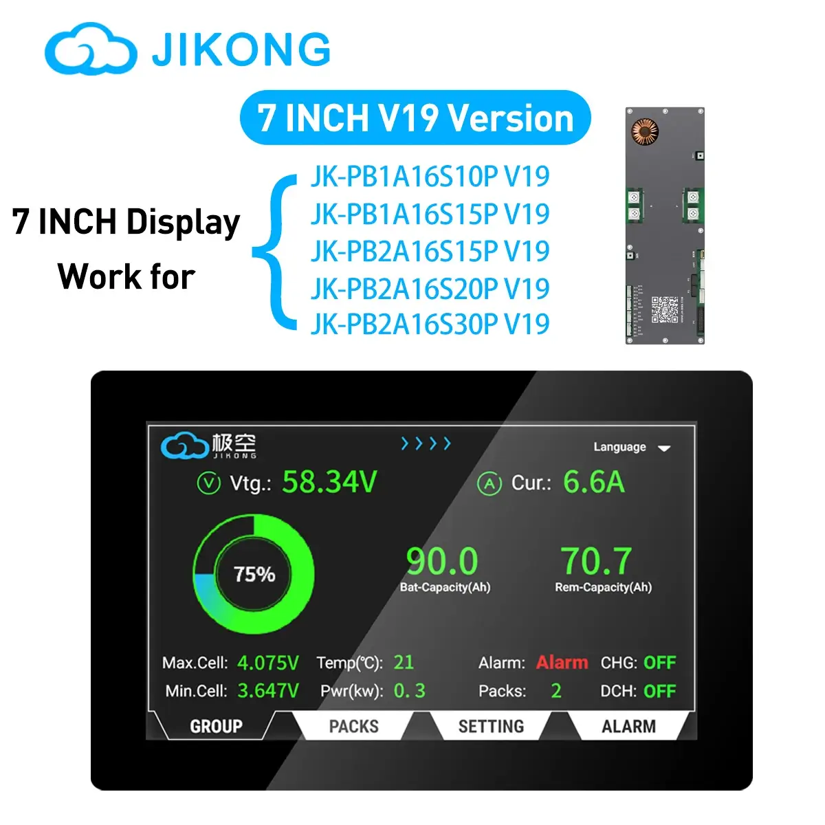 JK BMS LCD 7 V19 – це сучасний сенсорний дисплей з діагоналлю 4,3 дюйми, призначений для використання виключно з JK BMS серії PB , починаючи з апаратної версії V19 . Для підключення JK BMS LCD 7 V19 використовується спеціальний порт UART , який відсутній на версіях BMS V14 та V15. Завдяки покращеному дизайну та функціоналу, він дозволяє контролювати параметри батареї, налаштовувати протоколи зв’язку та частково керувати системою без використання смартфона чи ПК.